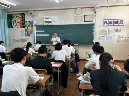 3年1組は数学 3年2組は社会の授業が行われています。小テストに答える声が真剣で、さすが、3年生ですね。
