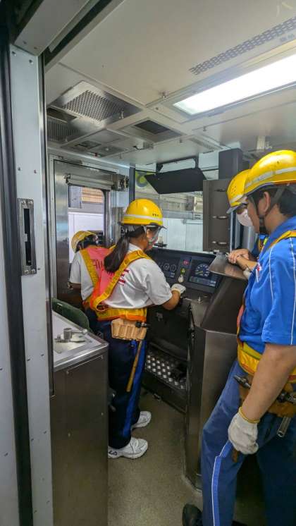 森ノ宮にある車両基地に連れて行ってもらい、車両の運転席に入れてもらいました。