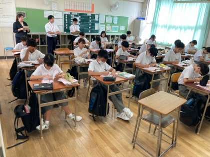授業の様子や休憩時間の生徒の活動を見学して、どのクラスもとても頑張っているという感想を聞かせていただきました。
