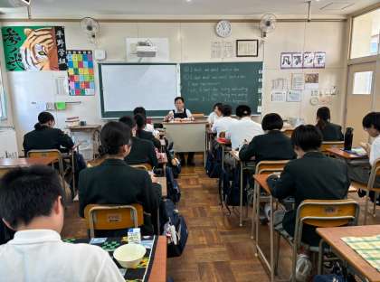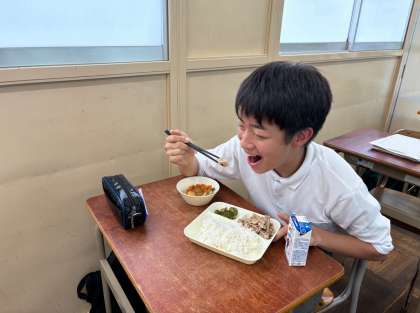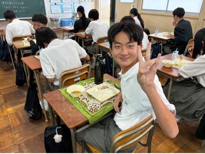 今日の給食メニューは吹き寄せ煮でした。美味しいに食べる様子が色んなところで見られました。3年2組の教室ではイングリッシュDAYとして、教室での会話は全て英語でした。食事も会話も楽しんでください。