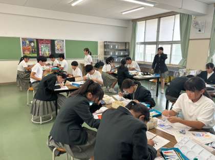 10月2日 授業風景 2年生 公開日 2024/10/02 更新日 2024/10/02 できごと 2年生の授業風景です。1組は数学、1次方程式に挑戦しています。2組は美術でオノマトペを絵で表現しています。3組は音楽で合唱練習に力を注いでいます。 いいね(0)