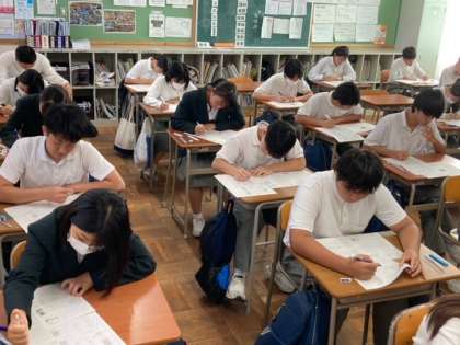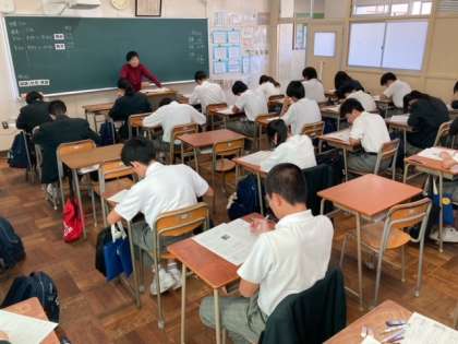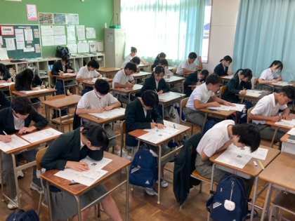 3年生の中間テスト1日目受験の様子です。 集中してがんばっています。