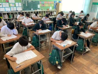 2年生の中間テスト受験風景です。 テスト勉強に取り組んだ成果に期待しています。