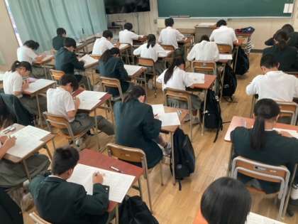10月11日 1年生中間テスト受験風景 公開日 2024/10/11 更新日 2024/10/11 お知らせ 今日は中間テスト2日目で、国語科、社会科、英語科の3科目に取り組みます。 2時間目の1年生社会科の受験風景です。 いいね(0)