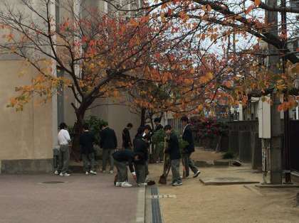 木曜です 公開日 2015/12/10 更新日 2015/12/10 お知らせ 毎朝の風紀委員会による登校時のあいさつ活動に加えて、毎週木曜日はボランティア清掃の日です。 今日はいつもより少し暖かく、風もなく清掃日和でしたが、これからは厳しい寒中清掃となりそうです。 いいね(0)