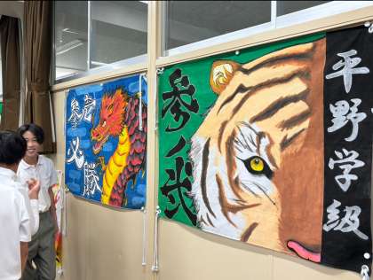 10月18日 展示見学 その2 公開日 2024/10/18 更新日 2024/10/18 できごと 各学年の学級旗も展示されています。生徒のみなさんで投票を行い、優秀作品を決めていきます。甲乙つけ難い作品ばかりで悩みます。 いいね(0)