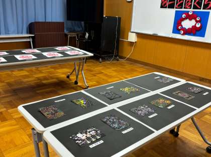 各学年や部活の作品が展示されています。アートアンドクラフト部の作品を紹介します。たくさんの素晴らしい作品が展示されています。