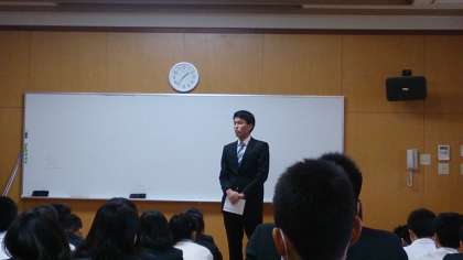 今日はまとめとして卒業生から、中学校を卒業してからのこと、海外での体験などから考えたことや伝えたいことを話していただきました。先輩の姿から学び、そのあとは教室でまとめをしました。