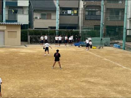 男子はソフトボールの試合を行っています。グランドから活気ある声が聞こえてきます。