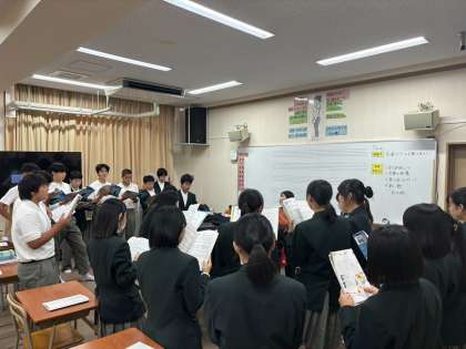 3年1組は音楽です。沖縄の戦争をテーマにした歌から、歌詞の意味について学び、最後は合唱をしています。