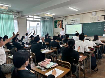3年2組は英語です。間接疑問文という難しい分野の学習にもかかわらず沢山の手が挙がっています。