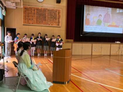 英語クラブは毎週木曜日の活動な中で取り組んだ、英語での物語を発表してくれました。