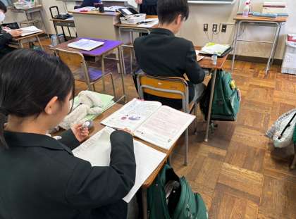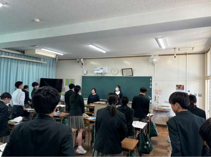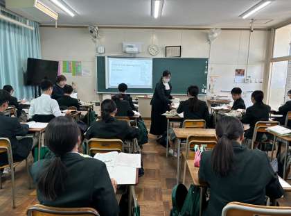 現在、大池中学校では相互授業参観週間として、先生方同士で授業参観をして授業力向上のための研修に取り組んでいます。2年3組は英語でした。いつも通り真剣な様子で授業に臨んでいます。