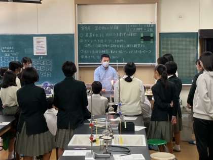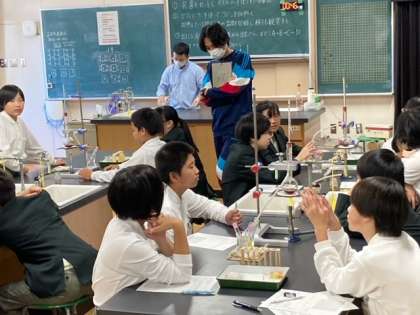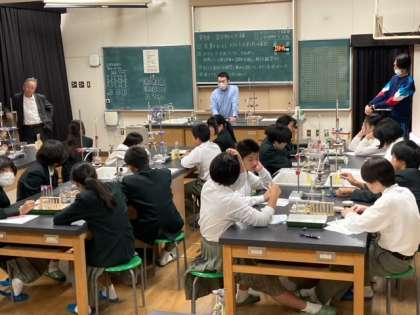 11月12日 理科研究授業風景 公開日 2024/11/12 更新日 2024/11/12 お知らせ 1年生理科の授業風景です。理科室で、ワインを加熱して出てくる気体について性質を調べる実験を行いました。 大阪市総合教育センターの教育指導員の先生から指導助言をいただきました。 いいね(0)