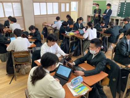 11月15日 国語科研究授業風景 公開日 2024/11/15 更新日 2024/11/15 お知らせ 1年生国語科の研究授業の様子です。 故事成語の現代語訳を考えます。「矛盾」を読んでグループで相談して考えた現代語訳を発表しました。 Teamsを活用して他の班の意見を確認しました。 いいね(0)