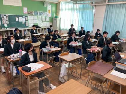 12月4日 3年生授業風景 公開日 2024/12/04 更新日 2024/12/04 お知らせ 3年生の1時間目の様子です。 1組は理科の滑車にかかる力の学習です。 2組は英語科で、英語の歌を発音に注意して歌う学習をしています。 いいね(0)