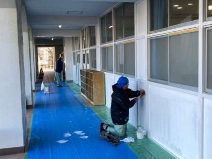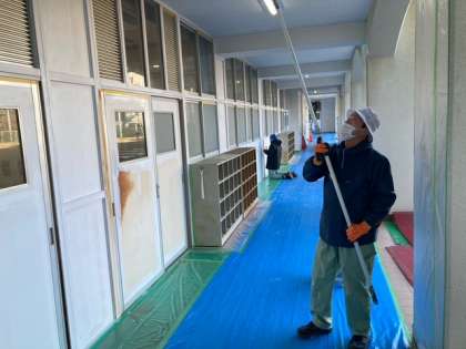 12月24日 冬休みの学校営繕 公開日 2024/12/24 更新日 2024/12/24 お知らせ 今日から冬休みが始まりました。 休みの期間に1階多目的室前付近の塗装作業を行っています。 大阪市営繕班の方々により劣化していた廊下をきれいにしていただいています。 寒い屋外で作業いただきありがとうございます。 いいね(0)