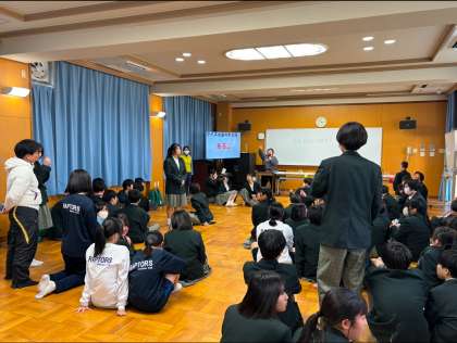 今年初めての大池タイムがありました。たくさんの生徒が参加する中、『新年お年玉抽選会』として楽しい企画が催されました。