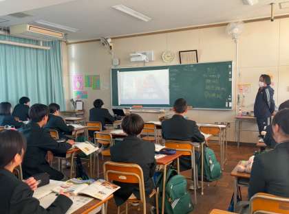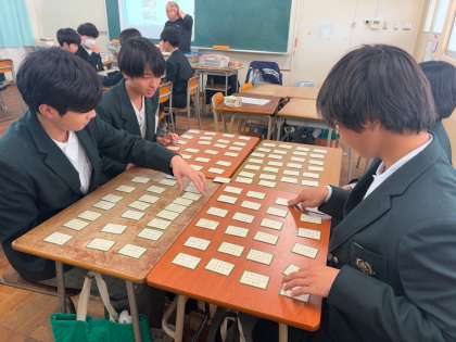 1月23日 2年生授業風景 公開日 2025/01/23 更新日 2025/01/23 できごと 2年1組は百人一首大会に向けて練習しています。上の句で札を取れるかが勝負の分かれ目。生徒のみなさんはどれくらい覚えていますか? 2年2組は国語の授業です。有名な『走れメロス』が教材です。長い文章ですが、頑張って読み深めています。 2年3組は社会です。岐阜県が舞台です。動画を見ながら、世界遺産について学んでいます。 いいね(0)