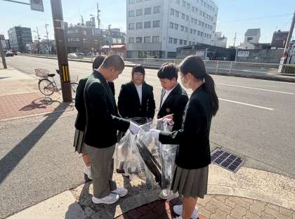2月14日 大阪マラソンクリーンアップ作戦 公開日 2025/02/14 更新日 2025/02/14 できごと 1年生は本日、大阪マラソンの開催に会わせて、地域清掃のボランティア活動に取り組みました。大池中学校周辺のゴミ拾いをみんなで協力して行いました。タバコなどのゴミが多いことに驚きながら、清々しい表情でボランティア活動に励んでいる姿がありました。これからも地域を大切にできる、素敵な大人へと成長してほしいと思います。 いいね(0)