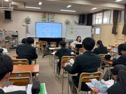 2年1組は数学、2年2組は音楽、2年3組は社会の授業風景です。いずれのクラスもテスト前ということもあり、テスト対策も含めて重要なポイントを勉強していました。明日からのテスト、ベストを尽くして頑張ってください。