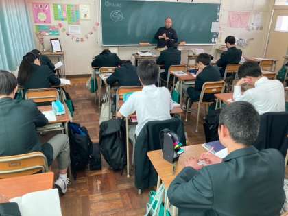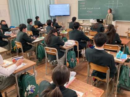2組は数学科の中央値について学習し、3組は理科の気象について学習しています。