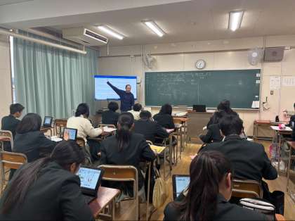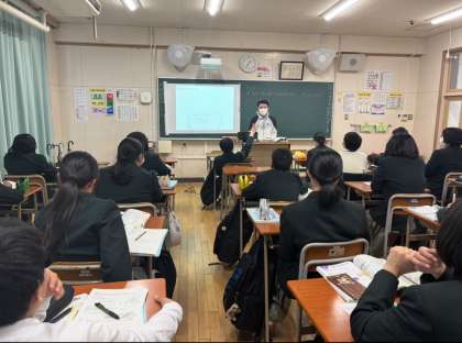 1年3組は社会です。平安時代の思想について学んでいます。それぞれのクラスの学習内容も難しくなっています。