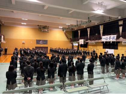 3月11日 3年生を送る会 公開日 2025/03/11 更新日 2025/03/11 できごと 本日1時間目は3年生送る会でした。生徒会のメンバーが中心となり作成した在校生からのビデオメッセージと歌が卒業生に向けて送られました。3年生への感謝の気持ちの一部だけでも伝えることができたのではないでしょうか?3年生からは大きな拍手が送られていました。 いいね(0)