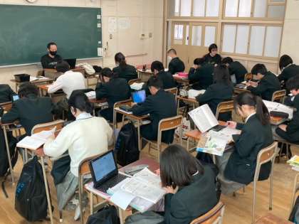1組は数学科のプリント学習を、2組は英語科でICTを用いた問題演習を行っています。