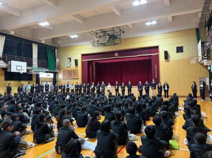 4月8日 令和7年度 1学期始業式 公開日 2025/04/08 更新日 2025/04/08 できごと 大池中学校 令和7年度1学期のスタートが切られました。73名の新入生を迎え、全校生徒226名での新学期が始まりました。ワクワクした様子、また、緊張した表情の生徒のみなさんが見られました。これから始まる新たな学校生活を1人ひとり大切に過ごしてください。職員紹介と対面式が行われました。大池中学校の全生徒と全教職員で素晴らしい時間を一緒に創っていきましょう。 いいね(0)
