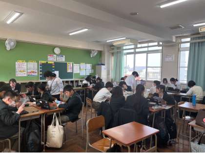2年生は万博博覧会の校外学習に向けて、グループ分けやパビリオンの調べ学習をしています。どんな体験や学びがあるか、分からないことばかりですが、未来社会が一つのテーマなので、当然かもしれません。4月22日に向けて、準備が進んでいます。