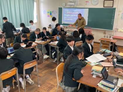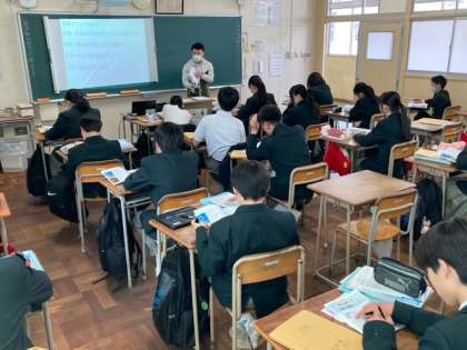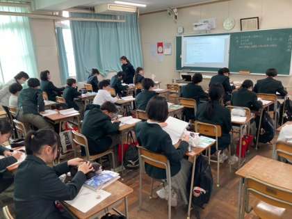 2年生の授業風景です。 1組は国語科、2組は理科、3組は数学科に取り組んでいます。