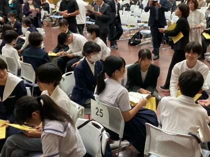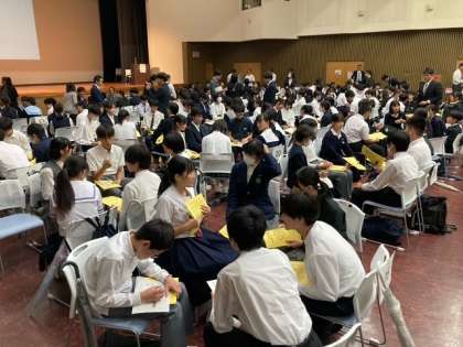 昨年11月に「大阪市中学生スマホサミット」が開催され、大池中の生徒会も参加し、市内各校と交流と協議を行いました。