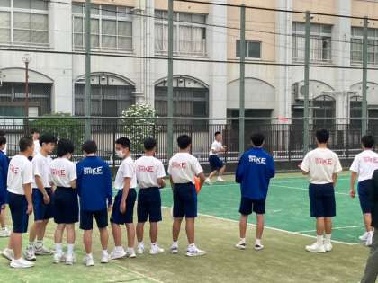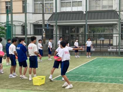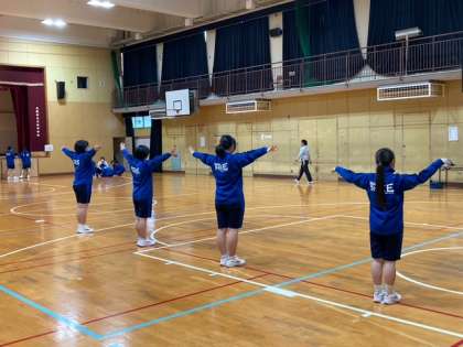 女子は体育館でラジオ体操や体力調査の種目に取り組みました。