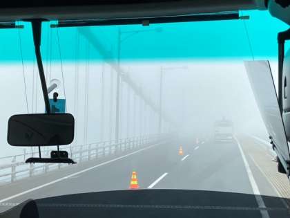 大鳴門橋を渡っていますが、うずしおは霧で見えません。