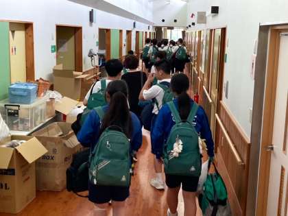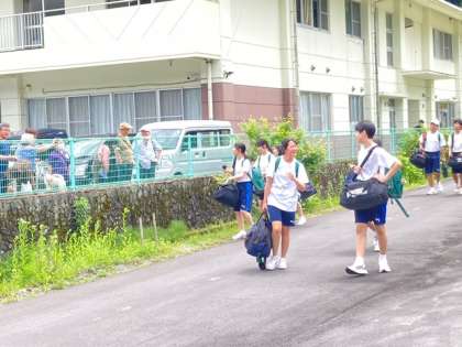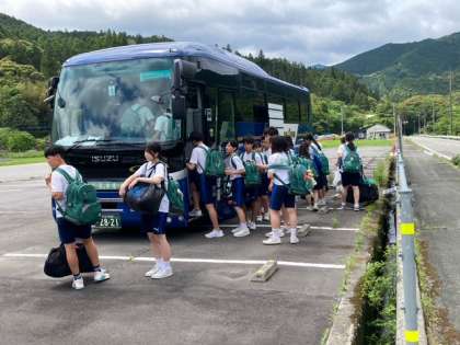 みんな元気に大豊町役場を出発して、これからラフティング会場に向かいます。