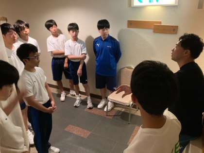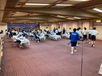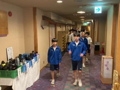 朝の班長会議を終え、朝食の食事会場に向かいます。