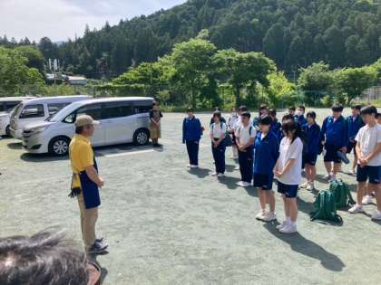 ここでは、べんがら染め体験とバームクーヘンつくり体験に分かれて活動します。