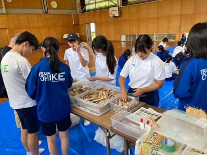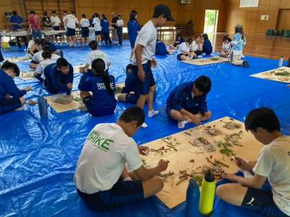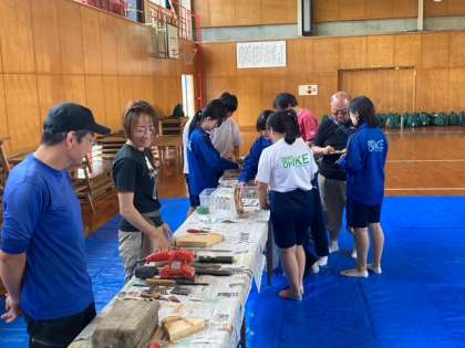 ベンガラ染め体験の班も木工工芸製作に取りかかります。 みんな真剣に作業しています。