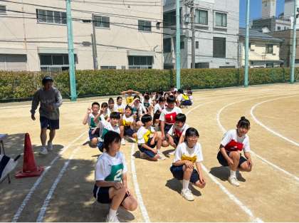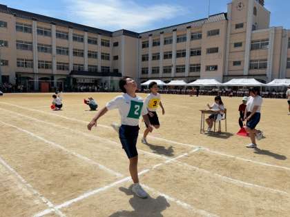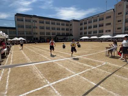 100m走です。応援にも力が入り、会場は大盛りあがりです。