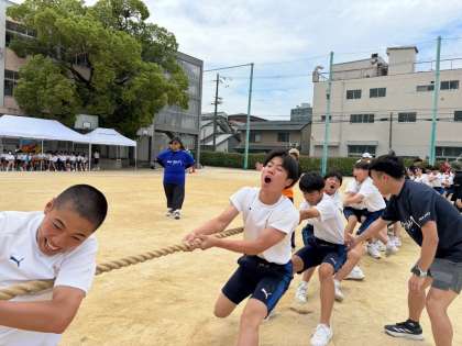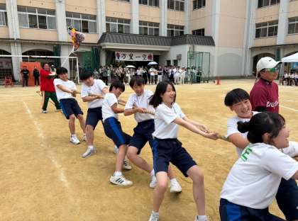 6月6日 第77回体育大会 公開日 2025/06/06 更新日 2025/06/06 できごと 午前中最後の競技は綱引きです。クラスの団結力が試されるこの競技… どのクラスも気合いがみなぎっておりました。最後は職員対3年生。3年生の圧勝に終わりました笑 いいね(0)