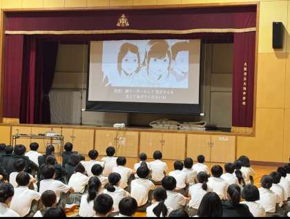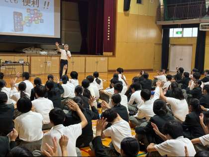 本日、KDDIより講師の方に来ていただき、SNSの使い方について勉強しました。多くの生徒が今や使っているSNSやネットゲームの危険性や、文字と言葉の違いなどについてわかりやすく教わりました。