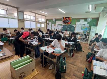 3年生もテストに向けて真剣です。質問が飛び交っていて、とてもいい雰囲気です。