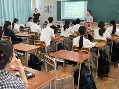 7月1日 光州広域市教育庁教職員による2年生授業風景 公開日 2025/07/01 更新日 2025/07/01 お知らせ 4時間目は2年生への授業を行なっていただきました。 テコンドーや韓国の文化的遊びなど楽しく学びました。 いいね(0)