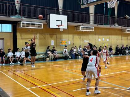 女子バスケット部は本日、赤坂台との試合に臨みました。50対63で負けてしまいましたが、白熱した面白い試合となりました。日頃の練習の成果を発揮していたと思います。選手のみなさん、お疲れ様でした。ナイスゲーム!