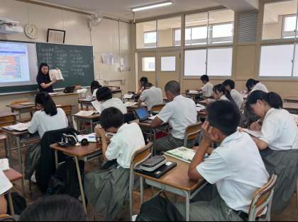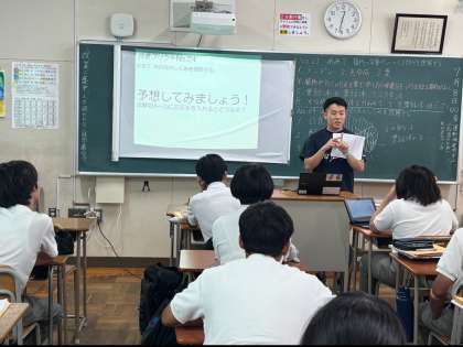 2年1組は理科です。光合成の分野で、問題に対して各自予想を立てていました。考える授業って、やはり面白いですね。必死に仮説を立てて、予想しています。