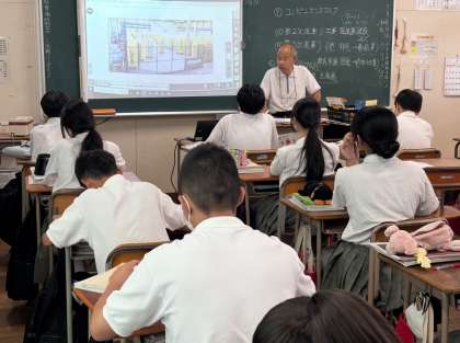 2年2組は社会です。コンビニエンスストアを例に、便利になった世の中について学んでいます。これからの社会はどうなっていくのか、まさに想像がつかないです。