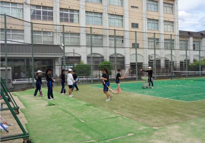 テニスコートでは、テニス部が練習しています。テニス部も府大会に向けて一生懸命です。個人戦に出場する選手のみなさんの健闘を祈ります。