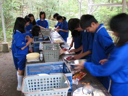 2年生は、豊中市立青少年自然の家「わっぱる」で、野外炊飯を行いました。