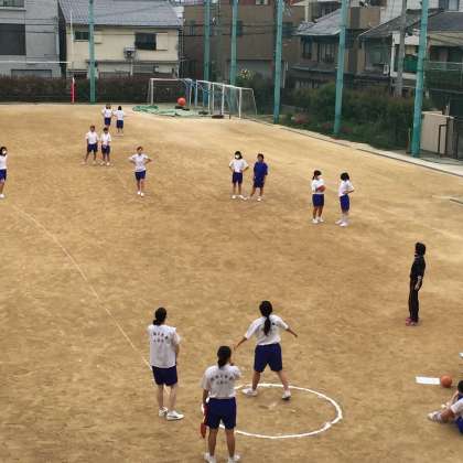 平成27年度の本校のハンドボール投げの成績は、男子平均22.50p、女子平均13.94pとそれぞれ全国平均を1.85p、1.11p上回る成績でした。今年は更に記録が伸びる事を期待しています。